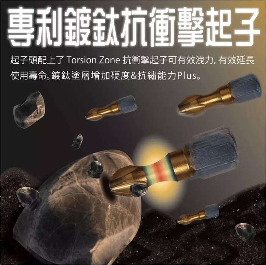 1. 專利鍍鈦Torsion Zone起子:抗衝擊、抗鏽蝕、耐用升級